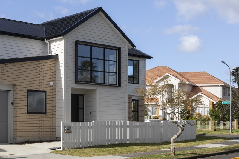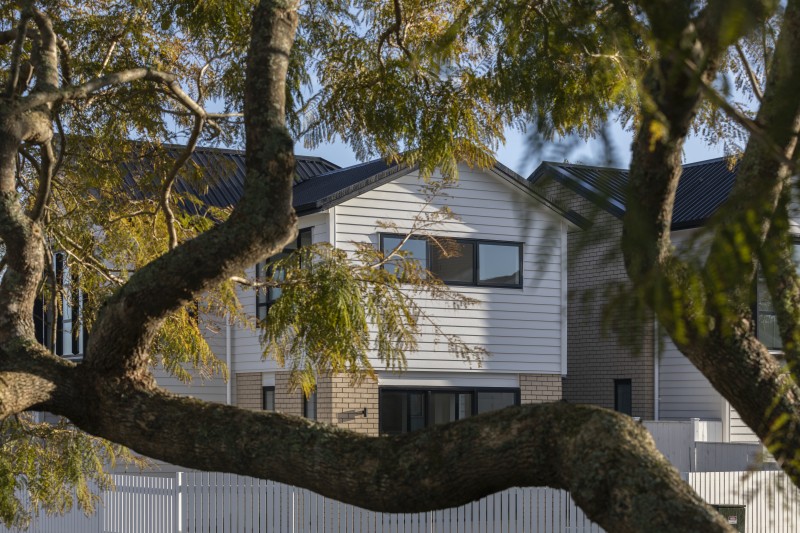 spacious family homes by Timescape Architects in one of Auckland’s traditional urban neighborhoods. Combining kiwi’s favorite brick+weatherboard with a simple and orderly contemporary form.